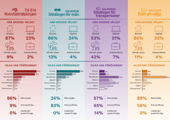 Stödlinjen för transpersoner 020-55 00 00 är en nationell stödtelefon och chatt för transpersoner och ickebinära som utsatts för hot och våld i en nära relation eller sexuella övergrepp. Även närstående och yrkesverksamma som möter våldsutsatta är välkomna att kontakta oss. Stödtelefonen är öppen alla dagar, dygnet runt. Chatten är öppen fem dagar i veckan. Alla oavsett ålder kan kontakta oss anonymt.